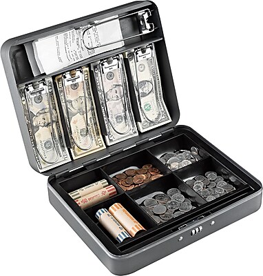 SteelMaster® Extra-Wide Steel Cash Box w/10 Compartments, Key Lock, Gray List Price: $95.63. This slim, low-profile cash box comes with a removable ten-compartment molded plastic coin and bill tray. ... Get Content Here